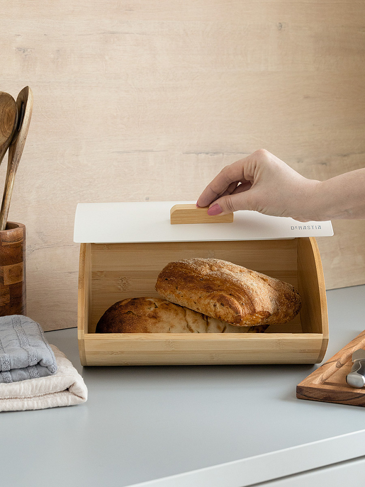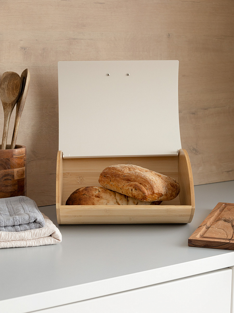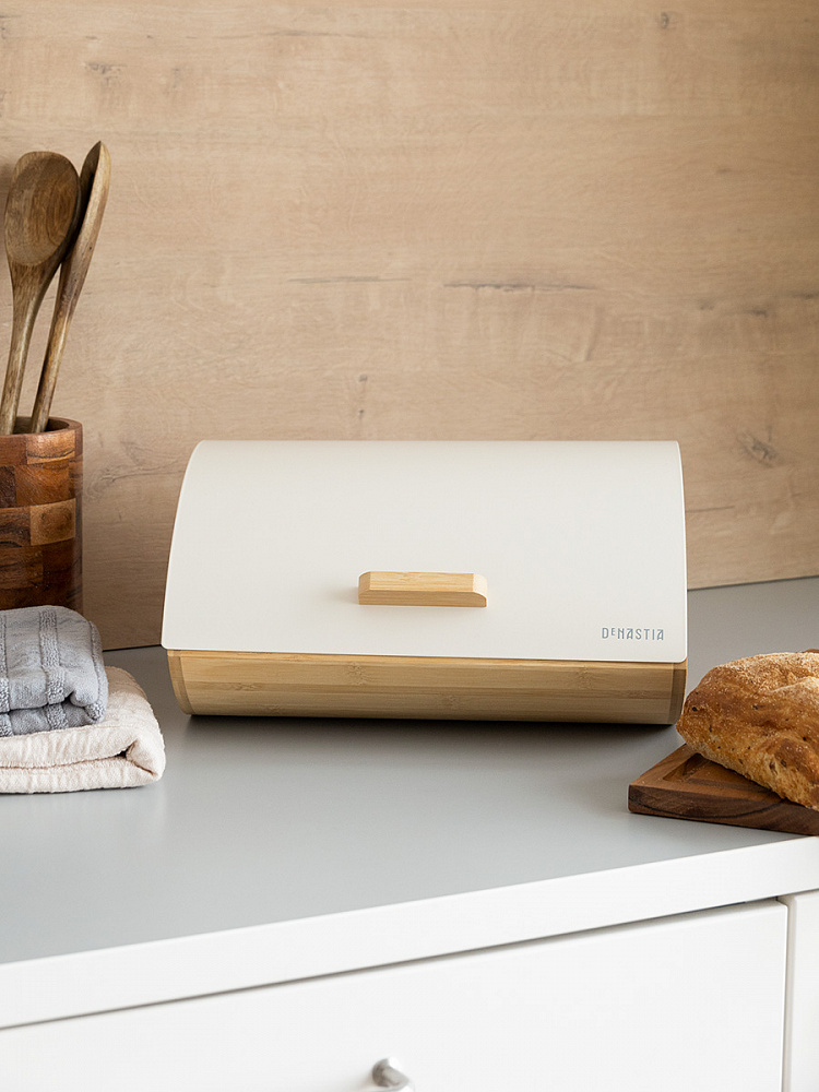 Хлебница 30,5x24,5x16 молочный сталь/бамбук