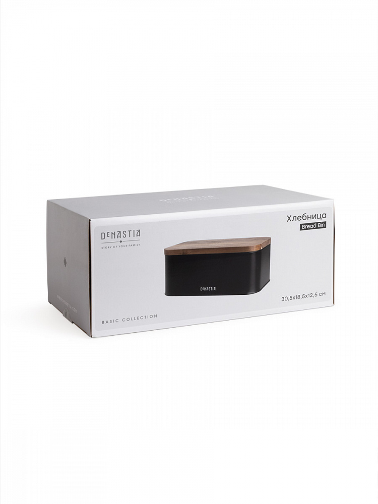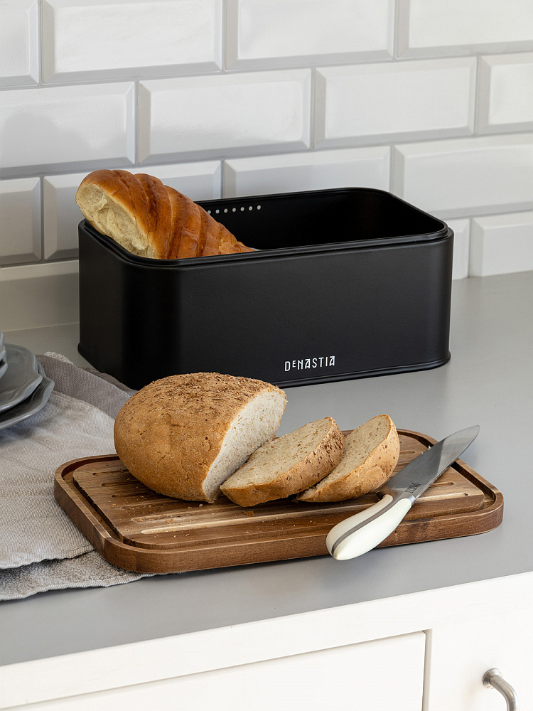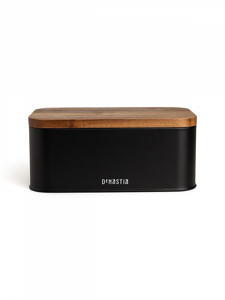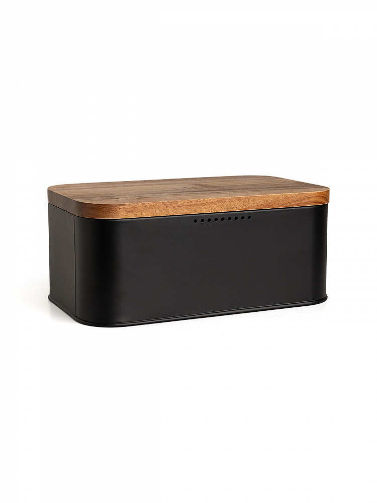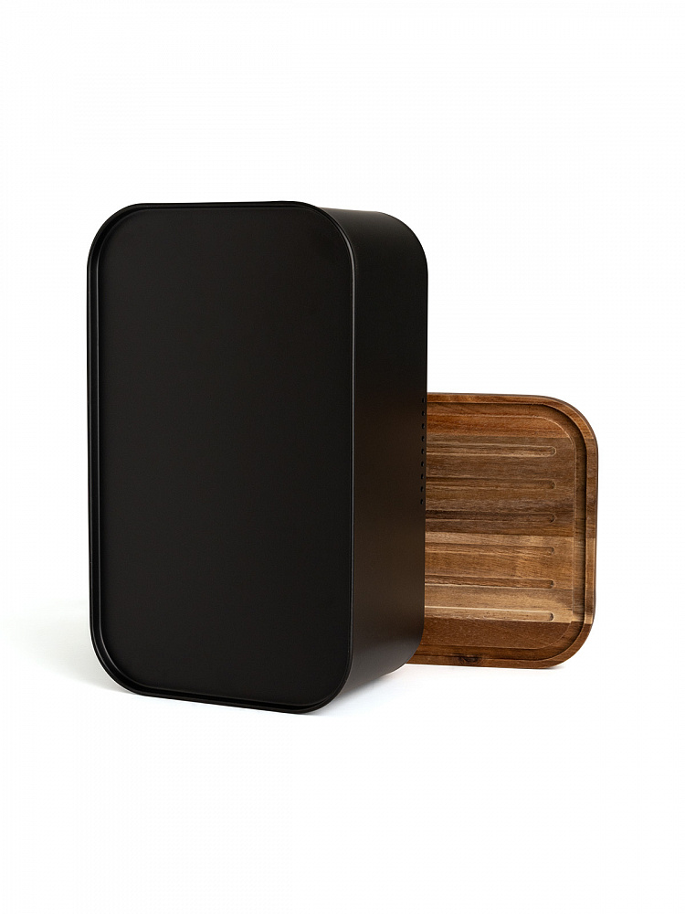 Хлебница с деревянной крышкой 30,5x18,5x12,5 черный сталь/дерево акации