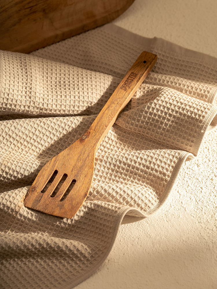 Лопатка кулинарная с прорезями из дерева акации, 30x8 коричневый дерево акации