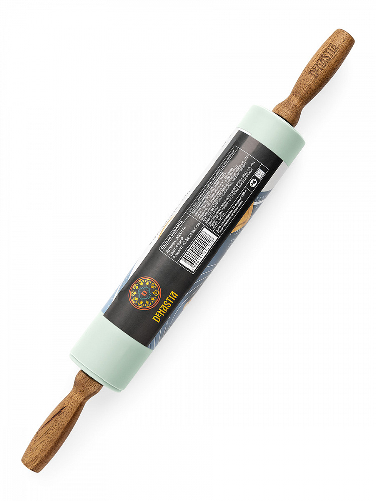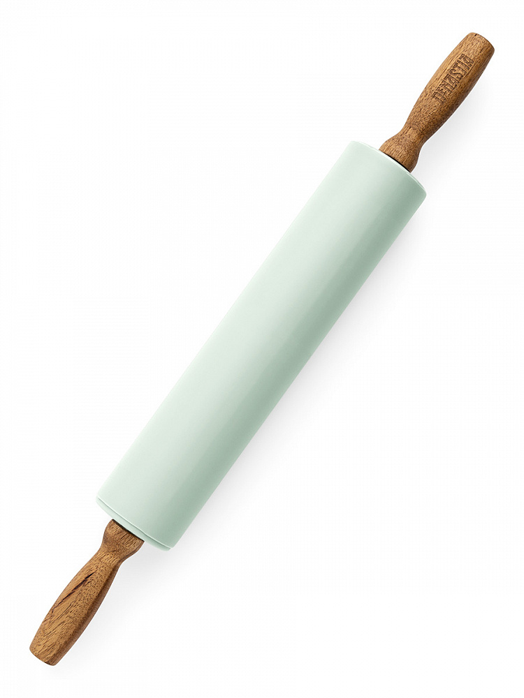 Скалка силиконовая 42,5x5 мятный силикон, дерево акации