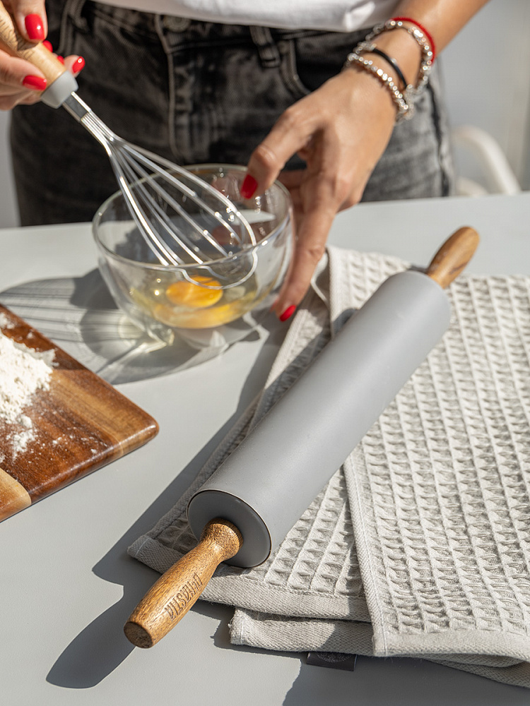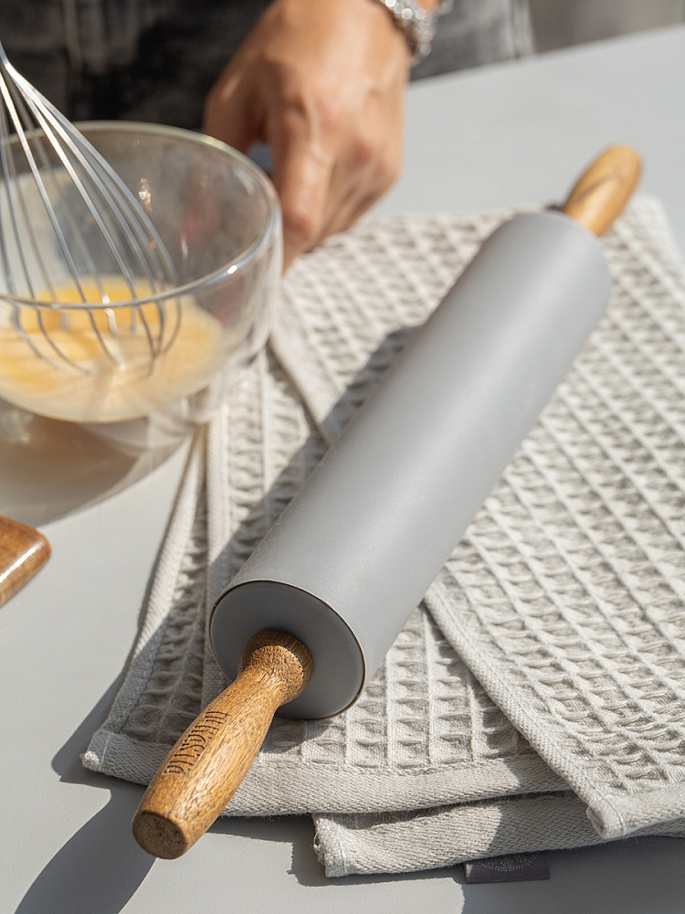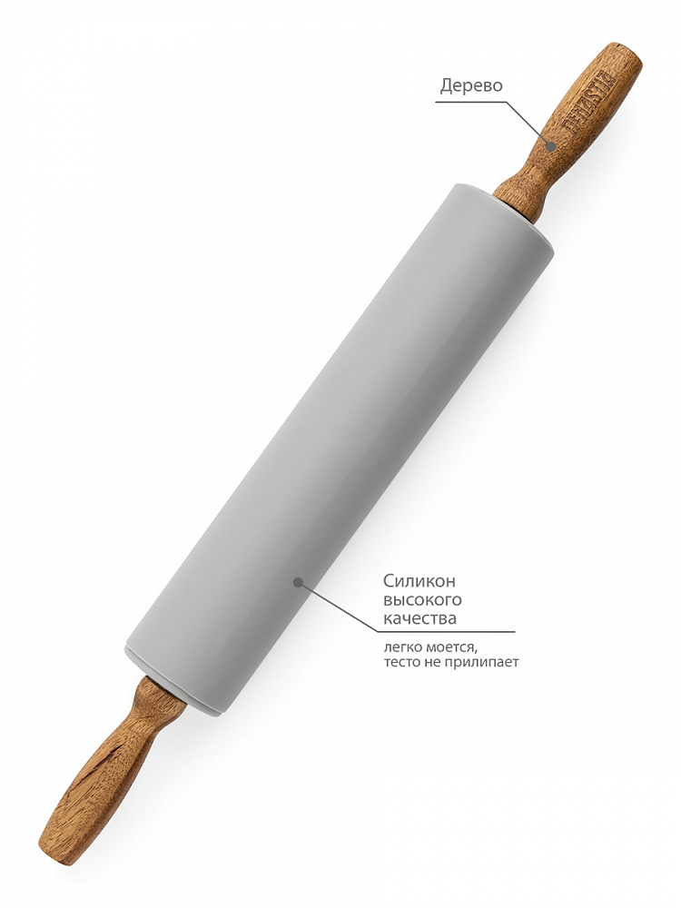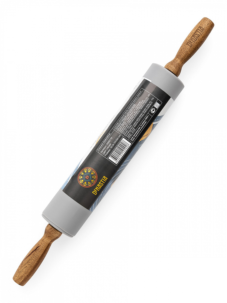Скалка силиконовая 42,5x5 серый силикон, дерево акации