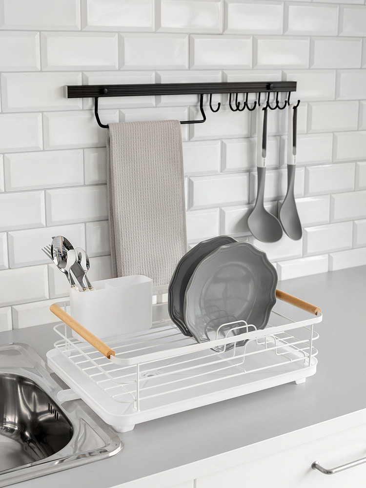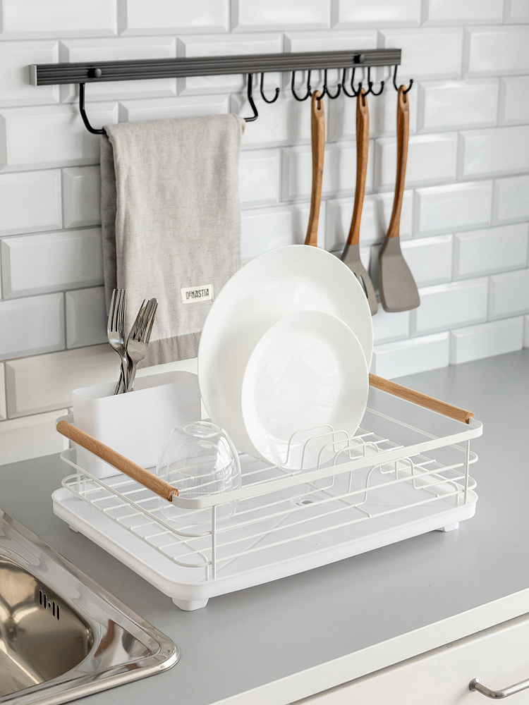 Сушилка кухонная 42x30x15,8 белый металл/полипропилен/бук