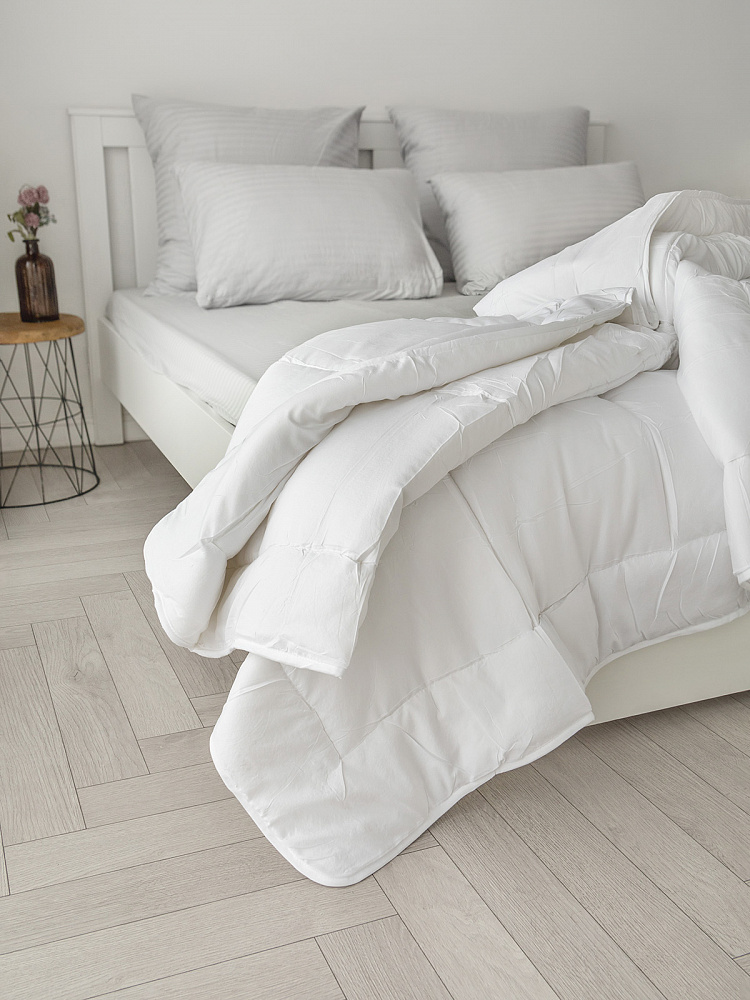 с наполнителем "лебяжий пух" 300гр/м2; плотность ткани 85 гр/м2; вакуумная упаковка