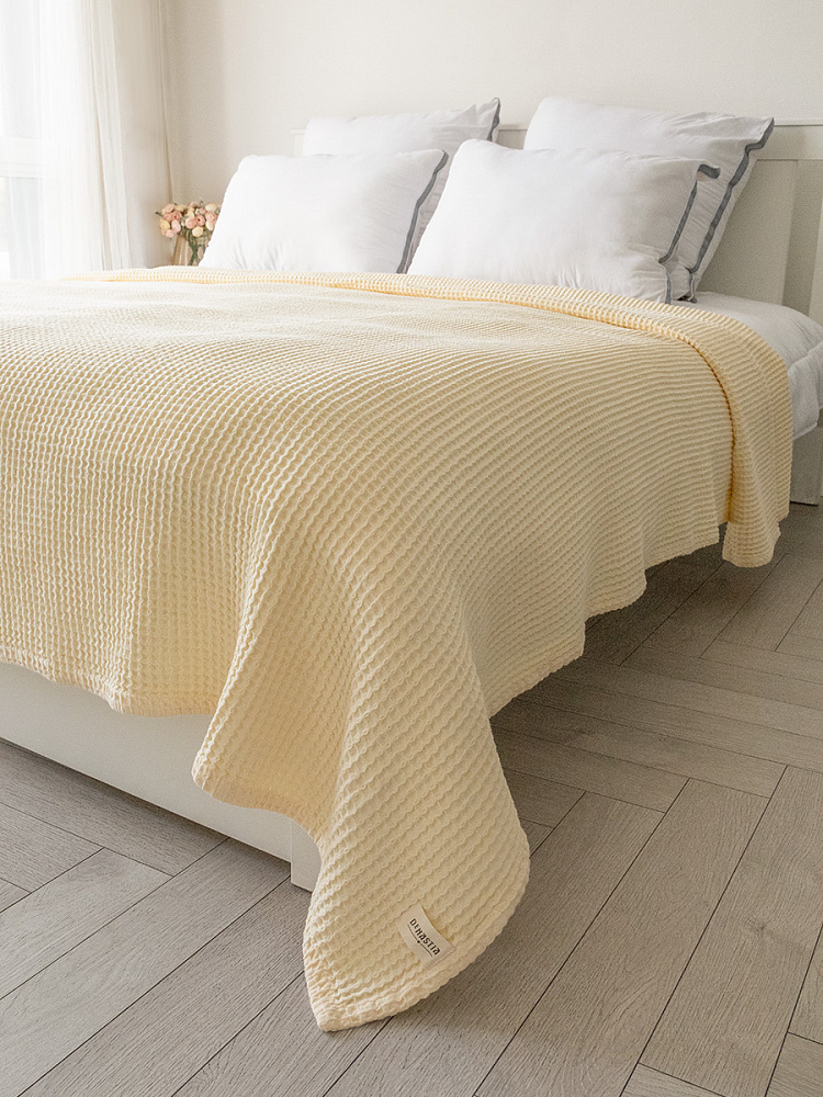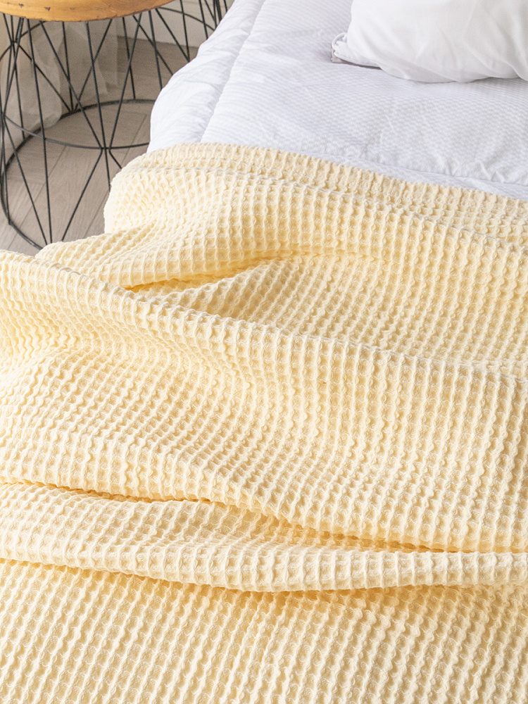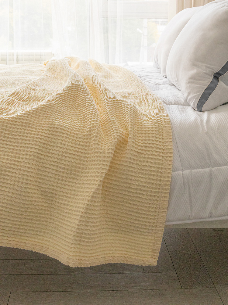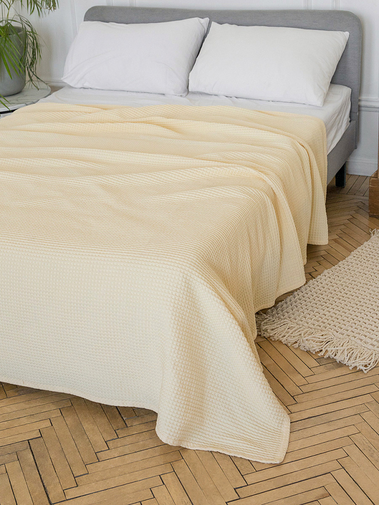 Покрывало вафельное 175x200 молочный 100% Хлопок