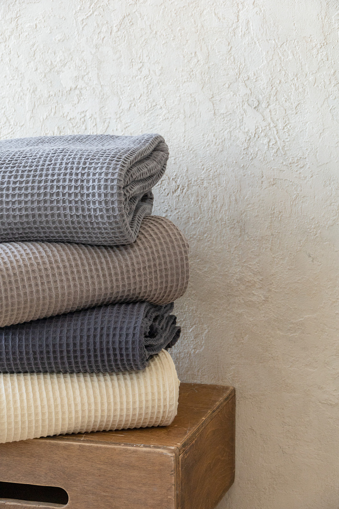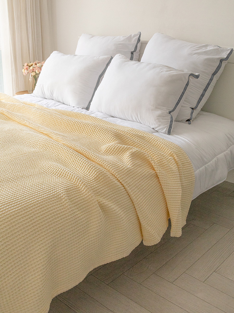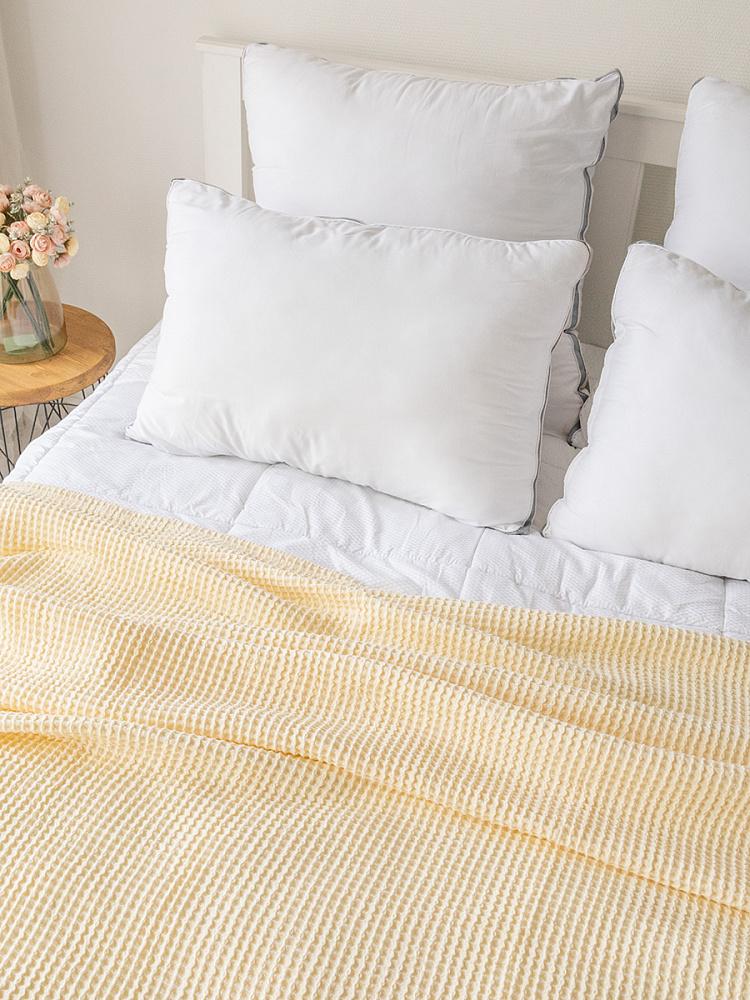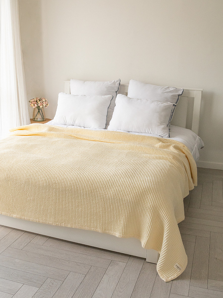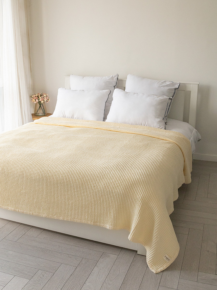 Покрывало вафельное 175x200 молочный 100% Хлопок