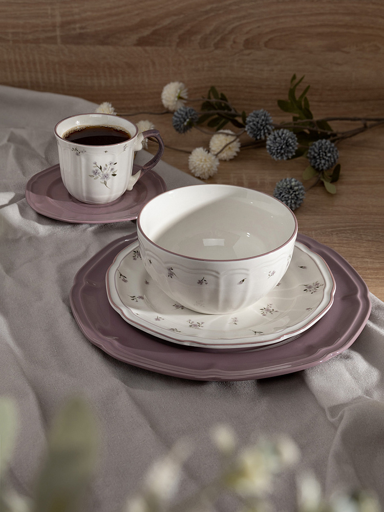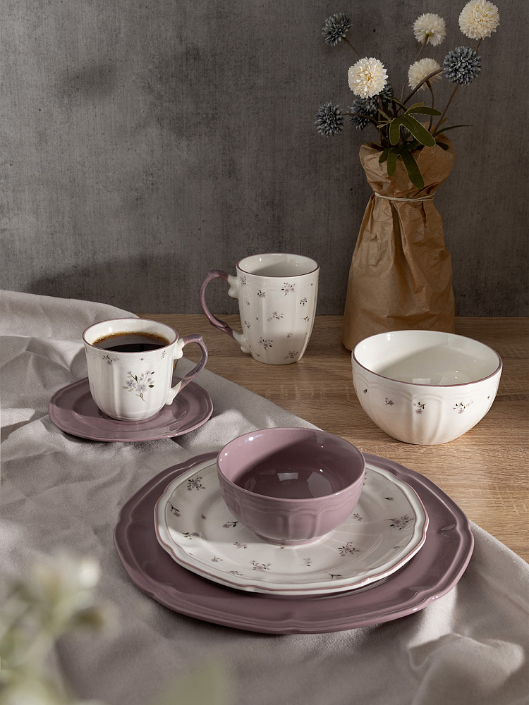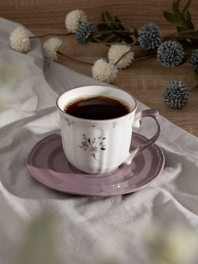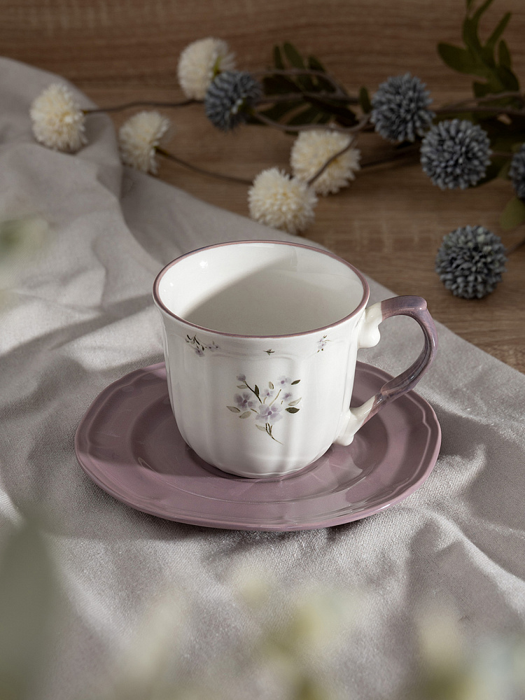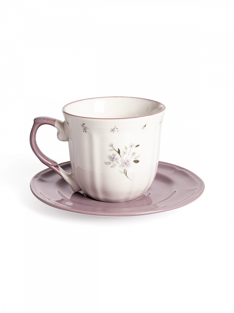 Кружка с цветочным принтом, блюдце D15,5 однотон фиолетовый