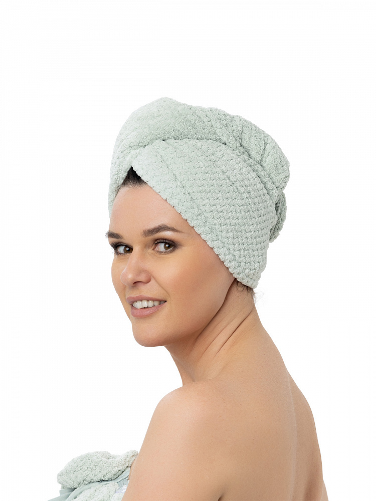 Тюрбан - повязка для сушки волос 25x65 зеленый 25x65