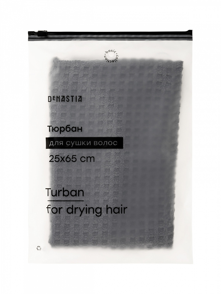 Тюрбан - повязка для сушки волос 25x65 серый 25x65